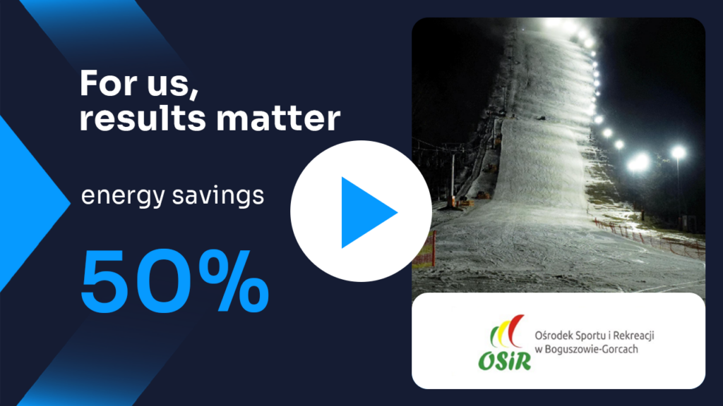 Next, we prepared a project including LED luminaires that meet sports standards. Installation took place during winter, allowing for an immediate improvement in slope safety and user comfort without disrupting the facility’s operation. The installed luminaires provided uniform lighting and energy savings.