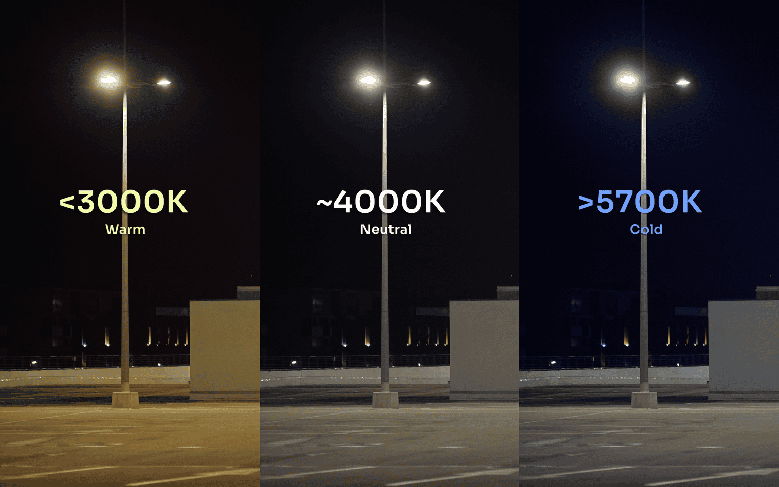 Warm light (3000K) is more environmentally friendly and less disruptive to the biological rhythms of people and animals, making it preferred in residential areas and parks.
