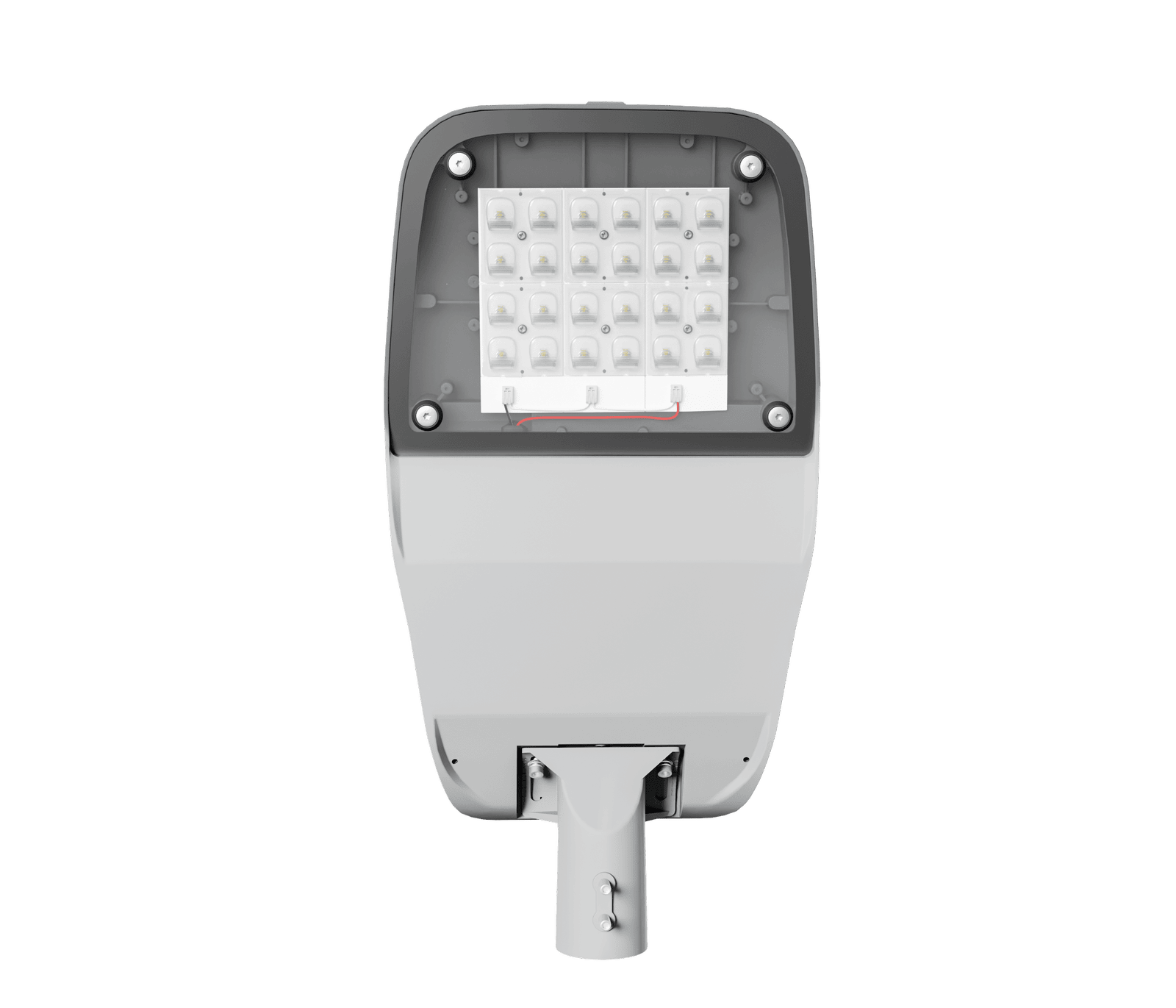 A mechanical accessory for mounting luminaires on 48.3 mm poles, finished in RAL9006 for a clean, durable streetlight installation.