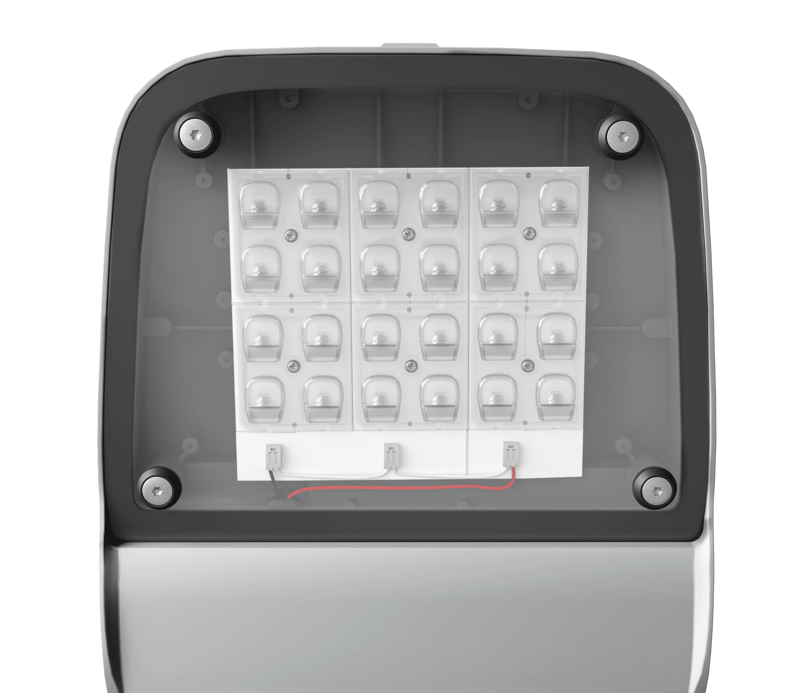 High luminous efficacy of up to 176 lm/W combined with modern lenses enables precise light distribution and reduced energy loss. The availability of color temperature options (3000K, 4000K, 5700K) allows the lighting to be tailored to the specific needs of each area.