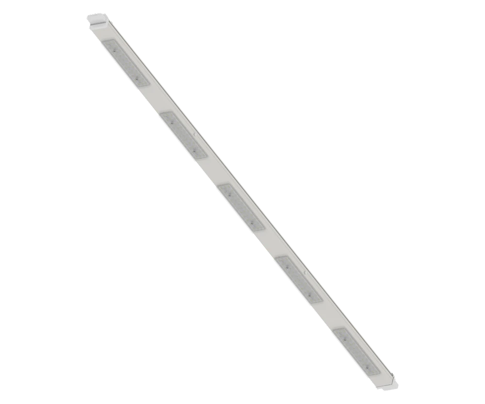 Trunkline is an industrial LED light line designed for production halls, warehouses, and commercial facilities. Available in power variants from 62–152 W and luminous flux from 4,700–24,000 lm, it offers luminous efficacy up to 176 lm/W. A robust steel housing in RAL 9003 color, quick connector, and four light distributions ensure easy installation and versatile applications. The IP42 protection rating, IK08 impact resistance, operating range of -25…+40°C, and a 5-year warranty guarantee reliable performance.