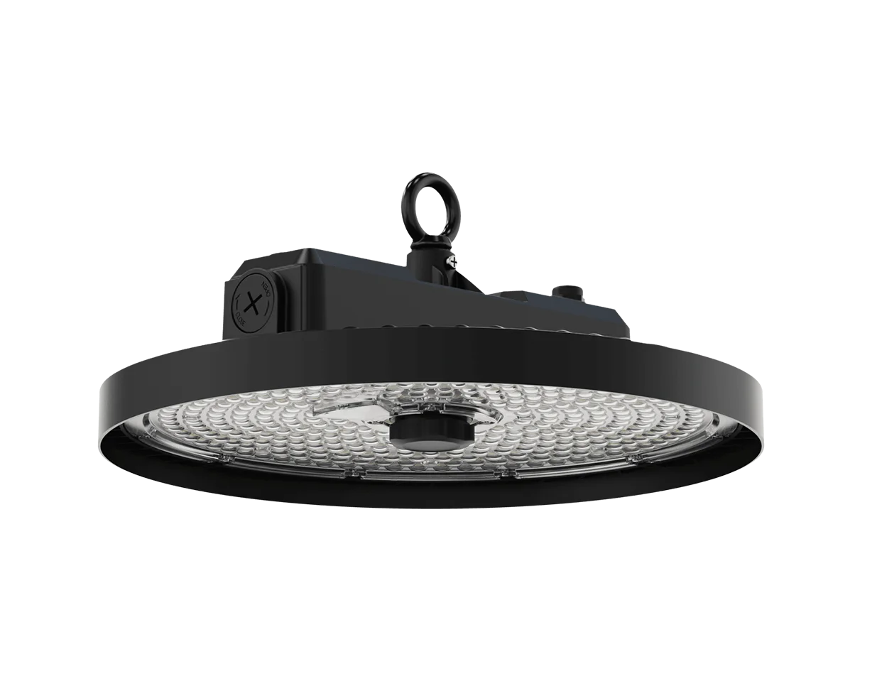In warehouse environments, the key features are the 176 lm/W efficacy and focused optics, which effectively direct light straight into the aisles between shelving racks. The MultiPower function enables energy consumption optimization by selecting 100, 150, or 200 W power levels depending on the mounting height. The long lifespan of the components minimizes the need for costly maintenance work at significant heights.